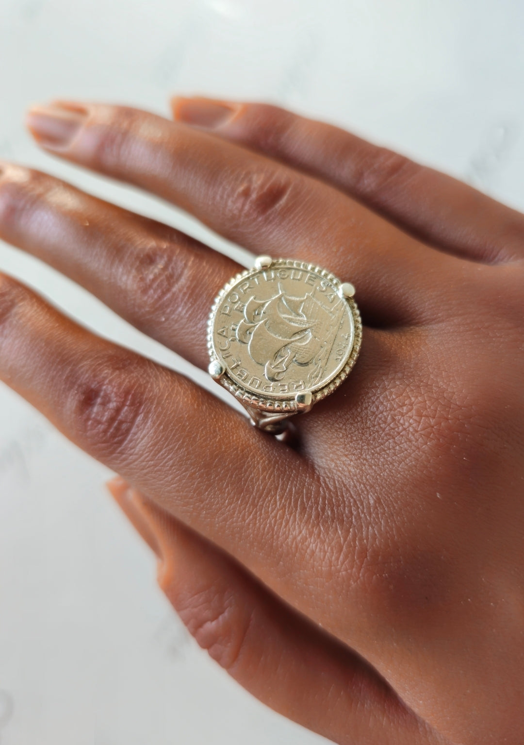 Anel Libra Caravela Portuguesa Prata