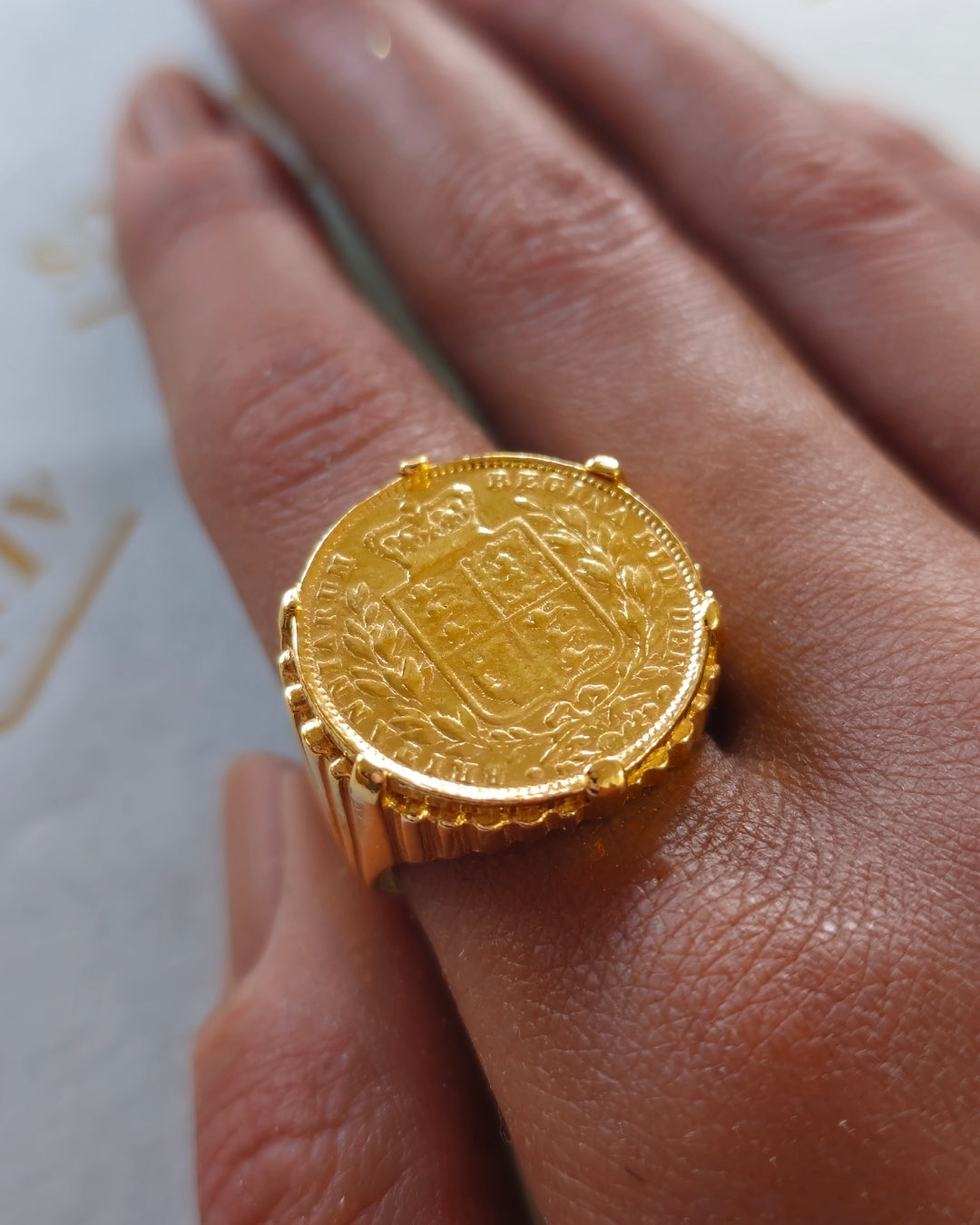 Anel Libra Brasão Prata Dourada