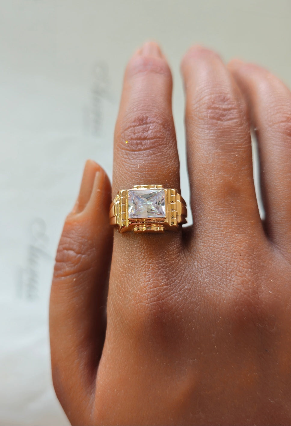 Anel Zircónia Branca Ouro
