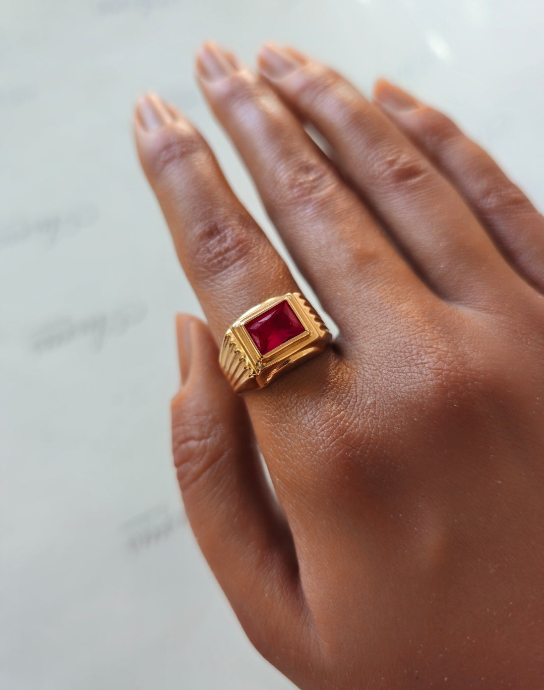 Anel Zircónia Vermelha Ouro